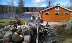 Efter att vi klyvt halva Ludvikas trädförråd vad det idag dags för lite hemmafix. Kenny drog iväg för att hämta högtryckstvätten på jobbet och kom tillbaka fyra timmar senare med en gotlänning i släptåg. Det som skulle bli en heldagsröjning blev plötsligt en akutrengöring av altanen för att få till årets första grillning.