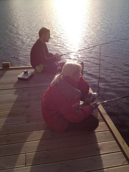 Andreas som konspirerat ihop sig med Kenny om grillningen åkte på att hjälpa oss med altanen för att hinna få den i ordning innan köttet var färdiggrillat, tji fick han!