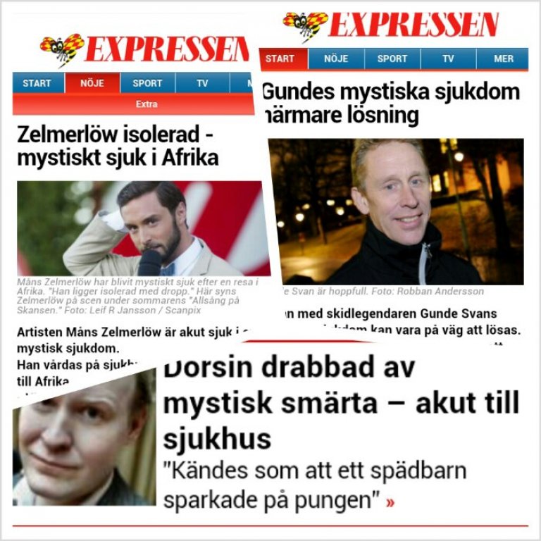 Hur kommer det sig att kändisar alltid råkar ut för mystiska sjukdomar medan vi vanliga, simpla Svenssons får vanliga, kända sjukdomar som kräksjuka, förkylningar, influensa, halsfluss och så vidare?!