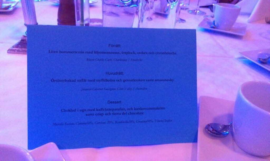Efter ett snabbt ombyte till finkläder var det dags för finmiddagen där vi fick gå längs röda mattan fram till en fotograf som förevigade festen och deltagarna.