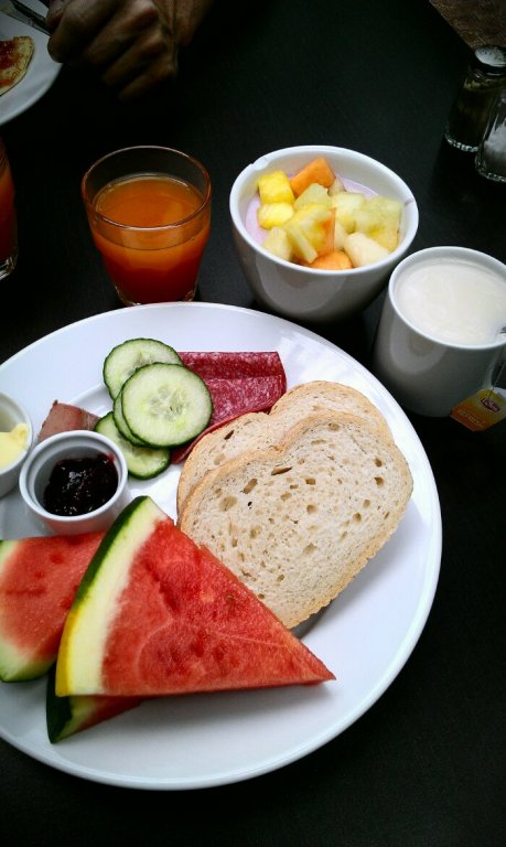 Eftersom vi kom hem sent igår och ingen fyllt på vår kyl (?!) när vi var på Gotland så fanns det ju inte så mycket spännande som Kenny kunde servera mig på sängen (eftersom jag fyllde år). Så när Kenny skulle köra mig till jobbet tog vi istället vägen förbi Scandic i Infra City för en hotellfrukost.
