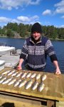 Dagen efter plockade vi upp 10 abborrar till och bestämde oss för att sluta fiska ett tag då vi fått så mycket, fast det egentliga skälet var att vi fyllt båda frysarna på ön och därför inte kunde ta hand om mer.
