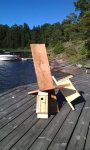På pappas att-göra-lista kunde vi läsa att han ville ha en bänk och detta projekt gav sig Kenny på. Under tre eftermiddagar så sågades och borrades det för fullt nere på bryggan för att hinna bli klar med bänken innan pappa kom till ön.