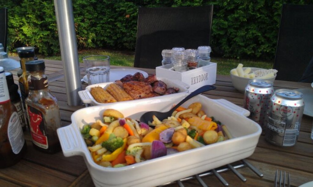 Helgen bjöd ju på ett fantastiskt väder så när jag tillbringat ett par timmar i solen på lördagen så drog jag hem till Jenny, Richard och Lowa som skämde bort mig med grillad mat och skönt häng i deras nya, fina altanlounge.