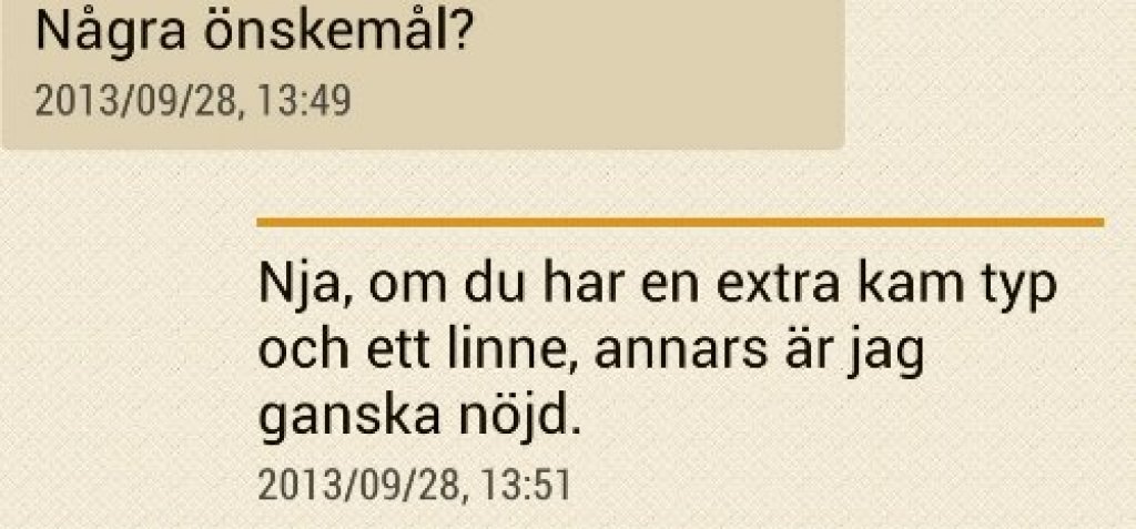 När vi låg inne på sjukhuset så skulle syster komma förbi och som ni ser i smskonversationen så undrade hon om det var något jag ville att hon skulle ta med.