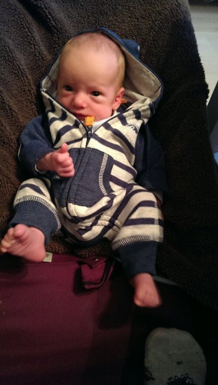 Nej, det gör han inte egentligen. Han vägde 3270gr i fredags så han är fortfarande en liten plutt men han ökar i vikt i nästan dubbel hastighet mot vad man ”måste” så han verkar sugen på att bli stor och stark.