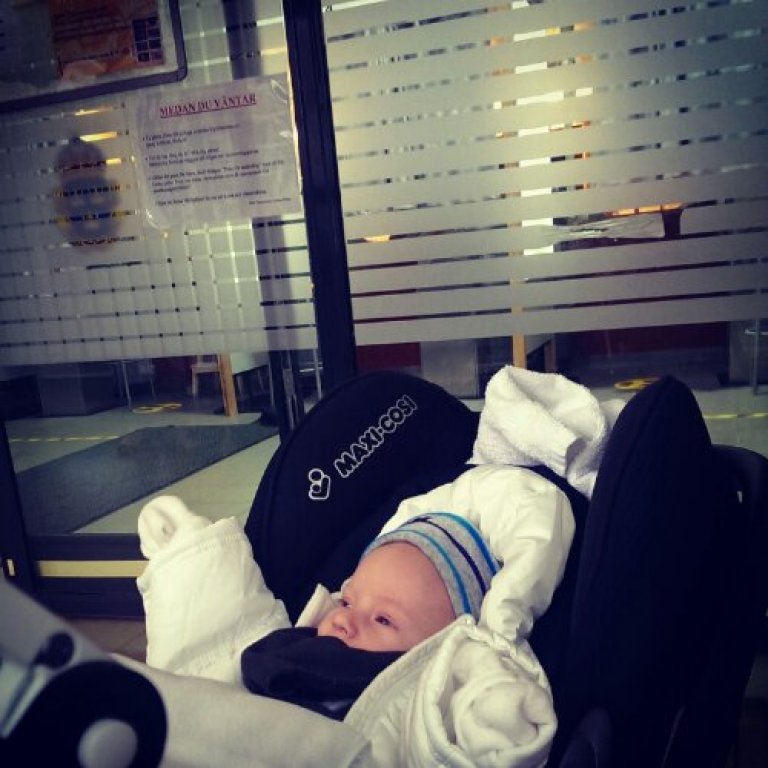 Polistanten hade dock en annan bebisförälder framför sig som brottades med samma problem. Efter cirka tjugo minuter så var det vår tur och då var Skrutt hyfsat uttråkad och låg på gränsen mellan jätteglad och jättearg.