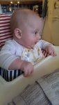 Jag var på IKEA för att i första hand köpa en barnstol till Felix till matbordet och var lite nervös över vad han ska tycka. Han sitter ju inte själv än men är inte helt nöjd med att bara bli satt i babysittern nu för tiden. Han verkar i alla fall väldigt nöjd över den och verkar inte reflektera speciellt mycket över den mer än att han kan sitta och leka i den.