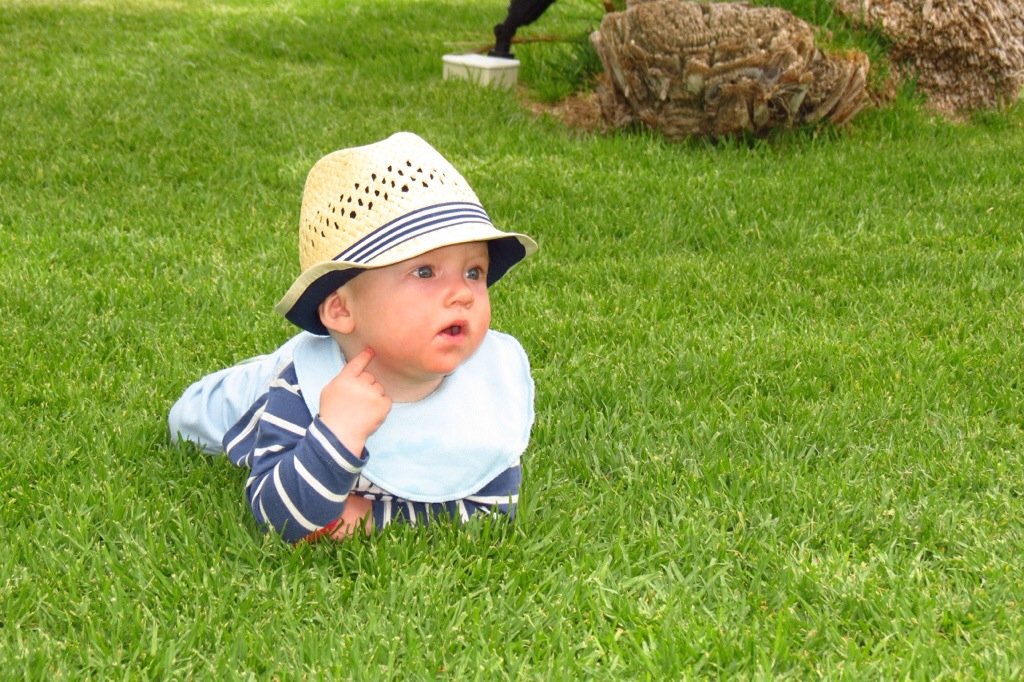 Flygresan gick faktiskt också ganska bra. Av landning och start märkte Felix ingenting av, det stora bekymret är snarare att behöva sitta still. Det ska ju hända saker HELA tiden. Men jag tror att våra passagerare runt omkring inte stördes för mycket, den lilla kotten har ju en charmig sida också som gör att man lätt förlåter när skrattgroparna tittar fram.