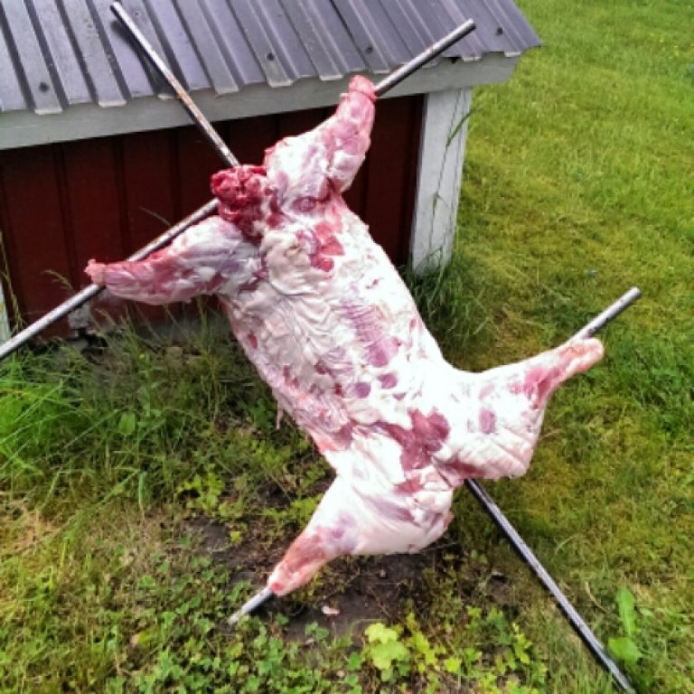 Så strax efter klockan två så började folket trilla in och grisen låg över grillen sen ett par timmar tillbaka.
