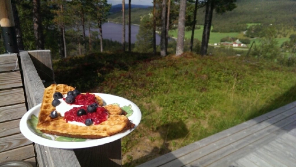 Så här såg ”hyttan” ut som vi semestrade i! Fantastisk fin både in- och utvändigt med de makalös utsikt.