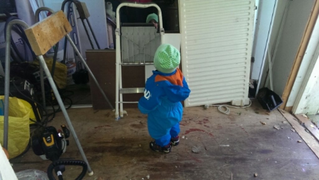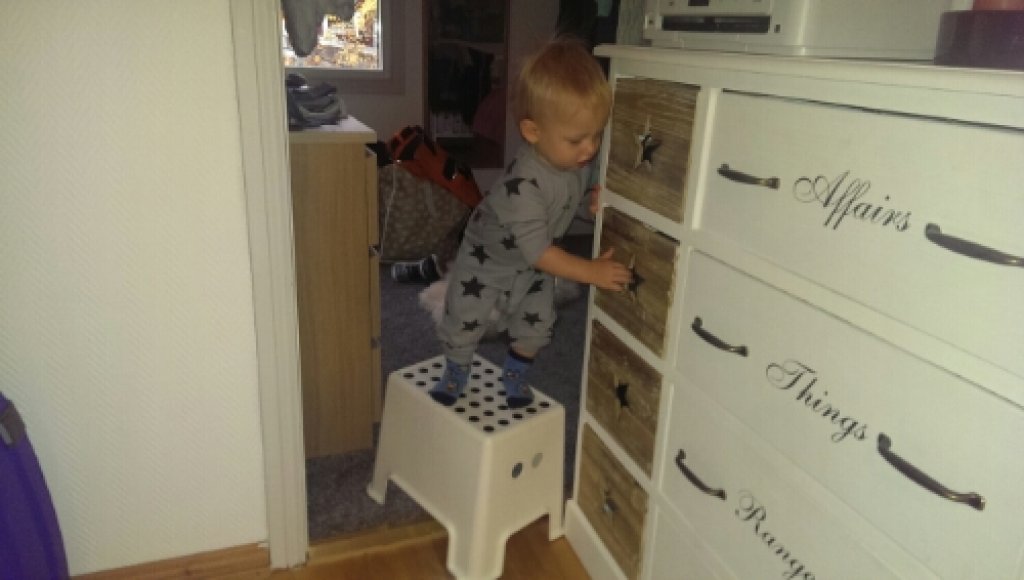 Ni ser att han står och funderar på om han kan använda sig av stegen va? (I sin nya fina skaloverall från moster.❤ )