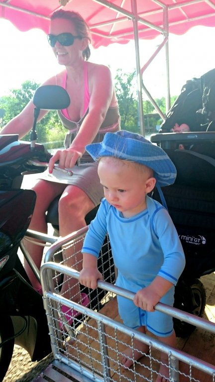 Jag fasar för att lämna tillbaka moppen imorgon för Felix har inte släppt moppenycklarna sedan vi hyrde den, med undantag för när vi kör för då är han mest upptagen med att se cool ut (trots mammas kläd- och hattval) där han står i fronten!