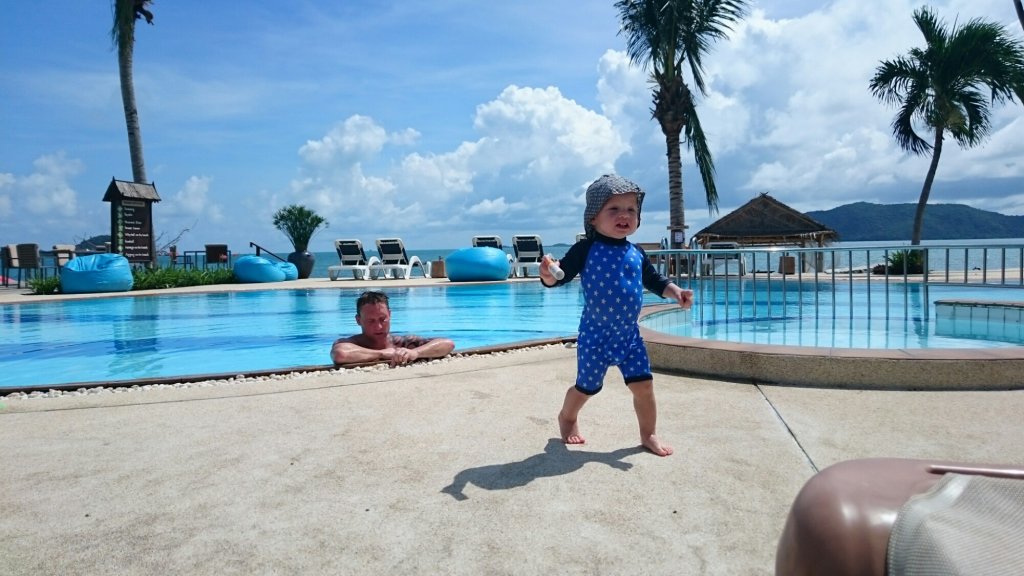 Två minuter efter att vi checkat in i rummet så låg vi i poolen, överlyckliga över att få lite svalka.