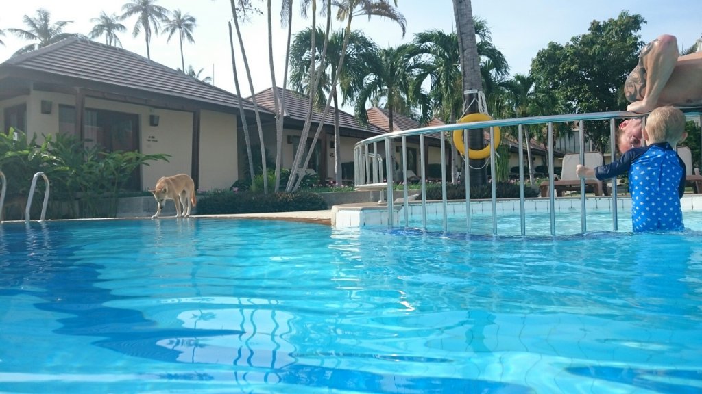 På dagarna badar vi tills vi får russinhud och så badar vi lite till, det som saknas där är det kristallklara vattnet som hör Thailand till.