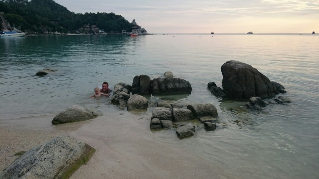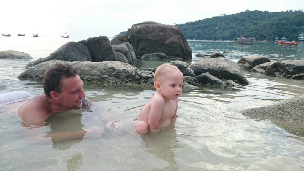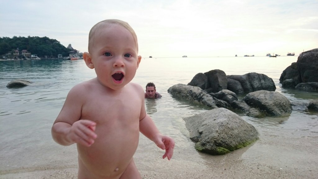 Till kvällen så gick vi längs stranden för att se utbudet på restauranger. Kenny bar Felix i bärmesen och det dröjde inte länge förrän Felix somnat. Lite för sent så kom vi på att Felix, som vanligt, höll i hotellnyckeln och när vi tittade i hans händer så var den ju borta förstås.