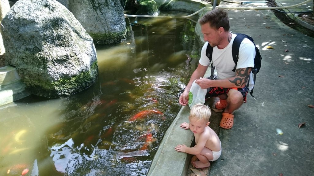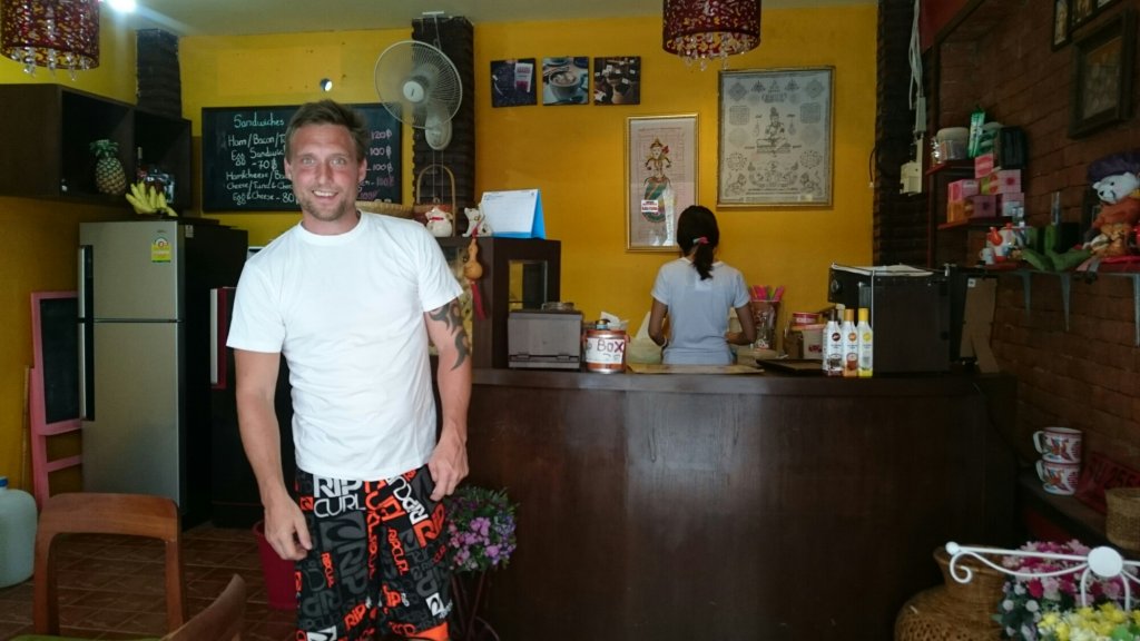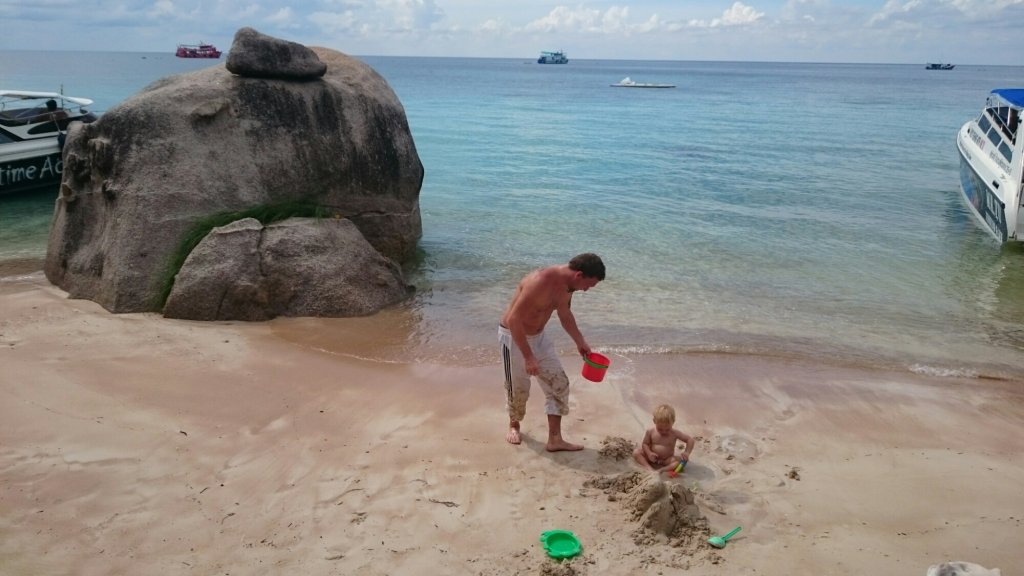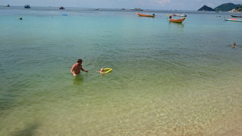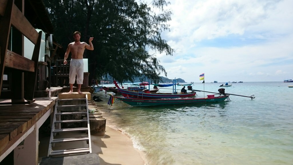 När vi var och badade vid en strand så fick han syn på en thailändare som höll på med sin longtailbåt. Eftersom båten hade massa lampor så var det uppenbarligen en fiskebåt och därför sprang Kenny och pratade med killen.