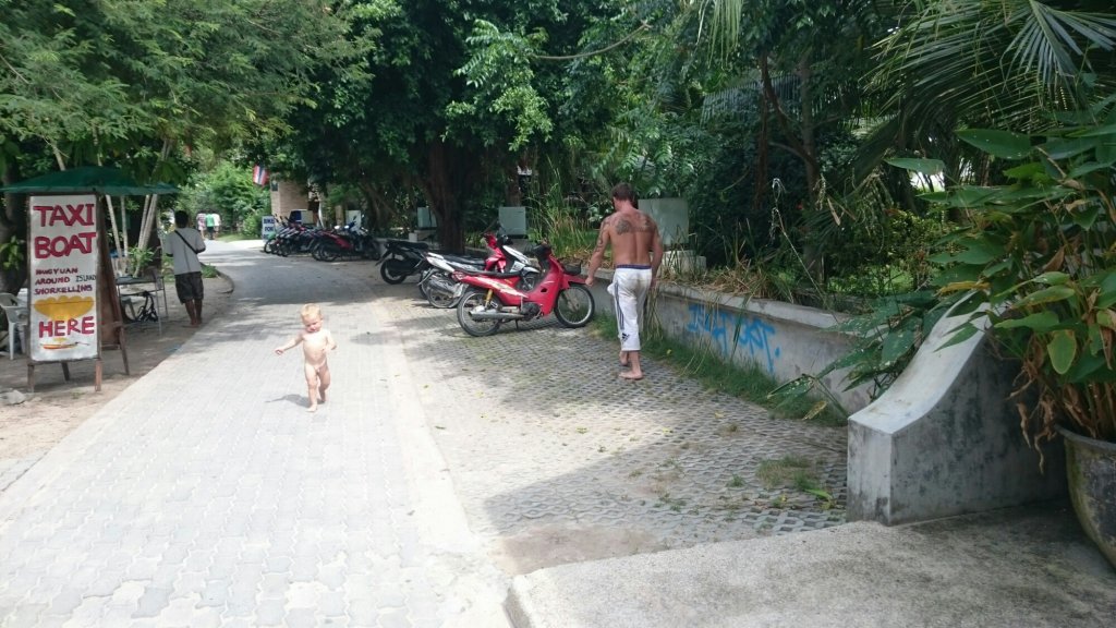 När vi hyrde moppe så hade Kenny vagnen ihopfälld mellan sina ben fram och så satt jag och Felix bakom. Dock så kommer den behöva en totalrenovering för att få bort sand och salt när vi kommer hem.