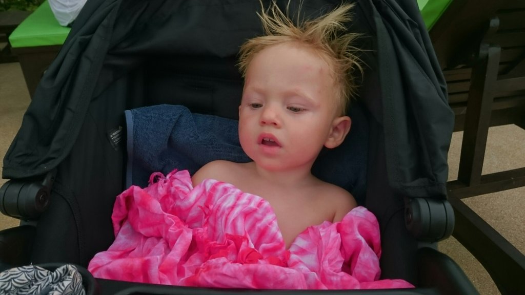När dom sedan kom ut så la sig Kenny ner under en parasoll och försökte vila eftersom han mådde illa och jag försökte göra Felix nöjd, fast han ville mest hänga på mig och kramas och det säger man ju inte nej till.