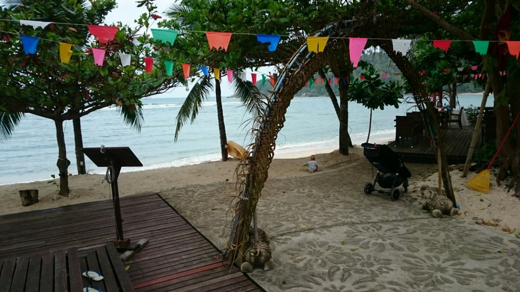 Fram till Koh Phangan kom vi till slut och då var Felix rejält trött och uttråkad och tyckte inte det var ett dugg kul att vi var tvungna att ligga utanför hamn i säkert en halvtimme innan vi kunde lägga till av någon anledning.