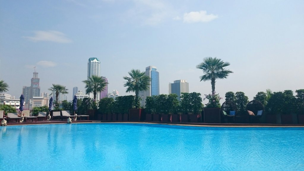 Solen skiner ju i Bangkok förstås, ett hån mot semesterorterna vi befunnit oss i de senaste två veckorna, så därför gick vi till poolen efter frukosten.