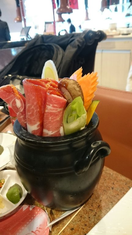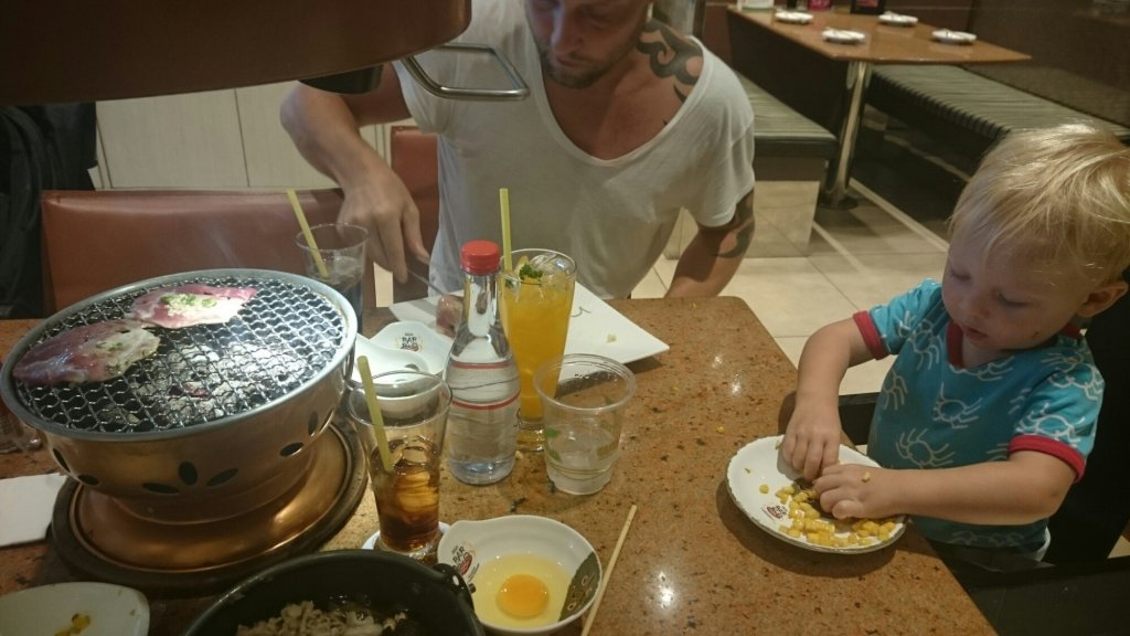 Jag åt sukiyaki och Kenny grillade kött på bordet. Det var supergott och vi hade kunnat sitta där och äta länge om Felix inte tröttnat när han var mätt.