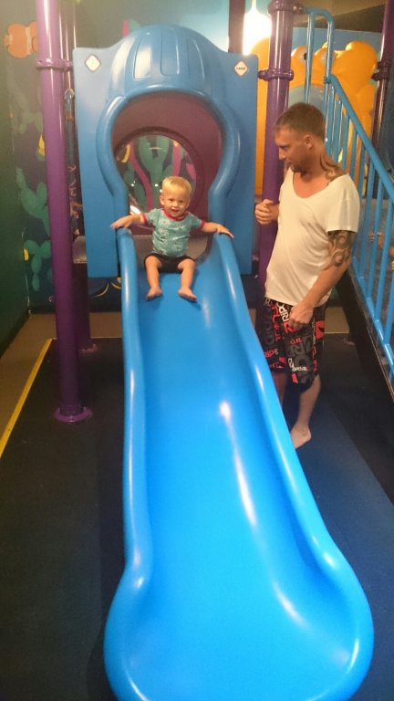 När Felix vaknade så åkte vi upp till våningen för barn.