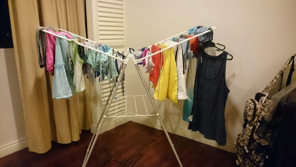 Städpersonalen hade hjälpsamt nog ställt in en tvättställning på rummet så att jag kunde hänga upp vår tvätt. Så lyxigt med en tvättmaskin på rummet! (Det känns nästan lyxigare än att lämna bort tvätten konstigt nog)!