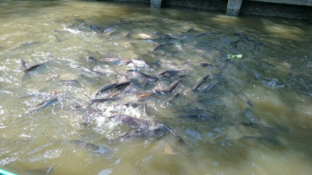 Lagom till att vi kom till en brygga där dom sålde bröd till fiskarna så vaknade Felix. Han tyckte det var kul med alla fiskar men lite läskigt när dom stänkte vatten.