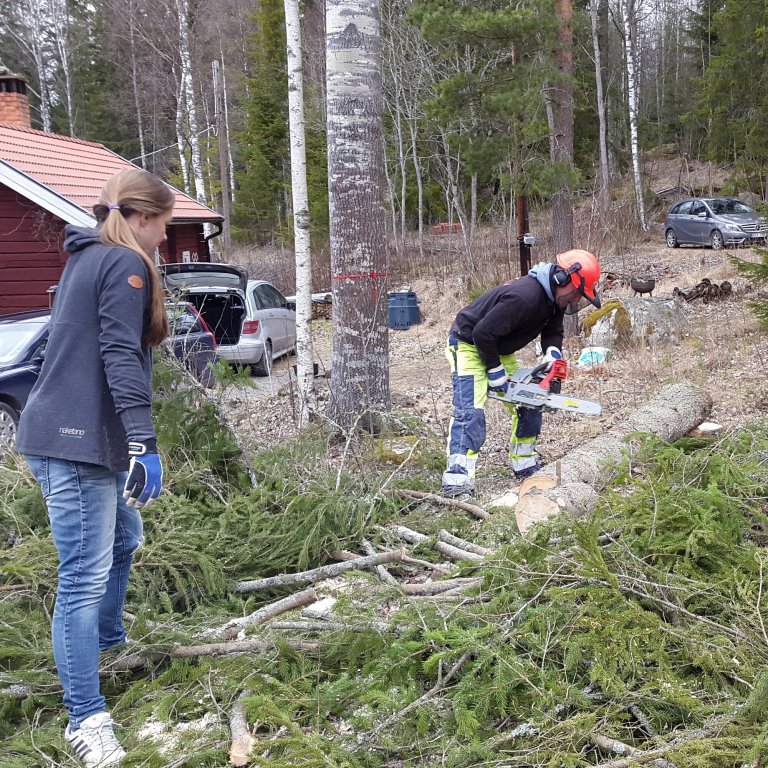 Vi åkte alltså till Dalarna i påsk. Mamma och Peter hade massor av träd som blivit fällda och som de behövde hjälp med att få bort.