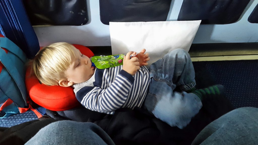Som tur var så fick vi sätena framför en vägg så flygvärdinnorna kom med filtar och kuddar så att vi kunde bädda ner Felix framför oss på golvet och där sov han i två och en halv timme.