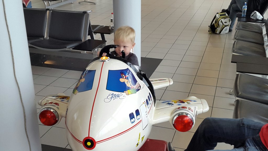 Felix avskyr att vara fastspänd. I planet så väntar jag in i det sista med att spänna hans bälte och sen gäller det att hålla honom sysselsatt tills man får knäppa upp bältet igen men det gick överlag bra.