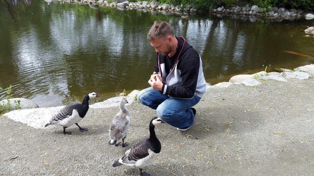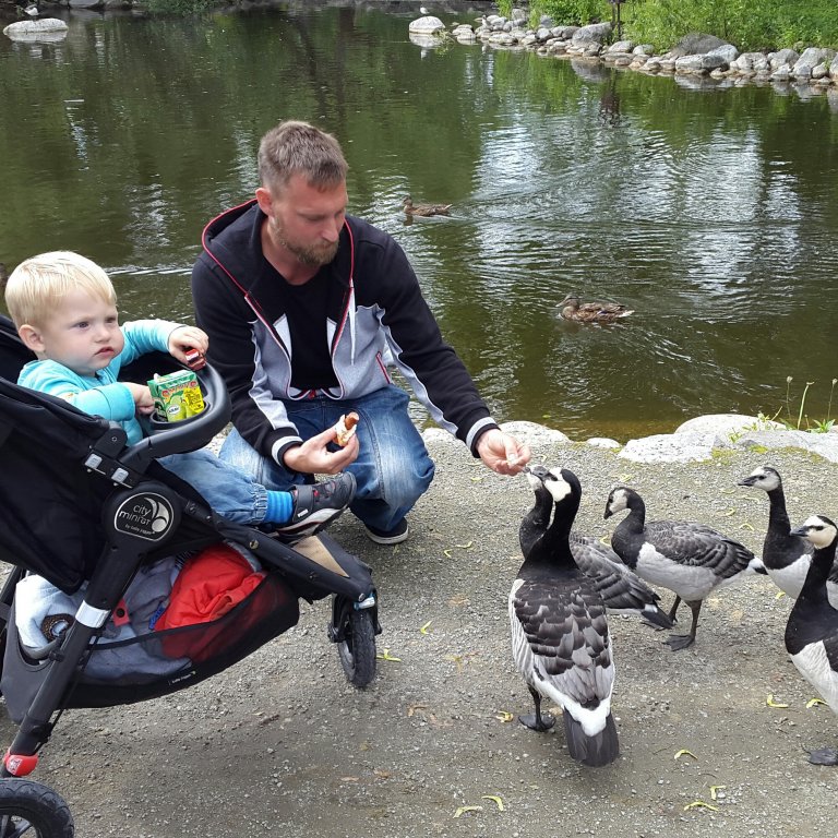 Vi klappade getter, tittade på grisarna, bytte bajsblöja mitt i parken eftersom det var så lång kö till toan, matade gässen och sprang ännu mer i tunnlarna innan vi gick ner mot akvariedelen.