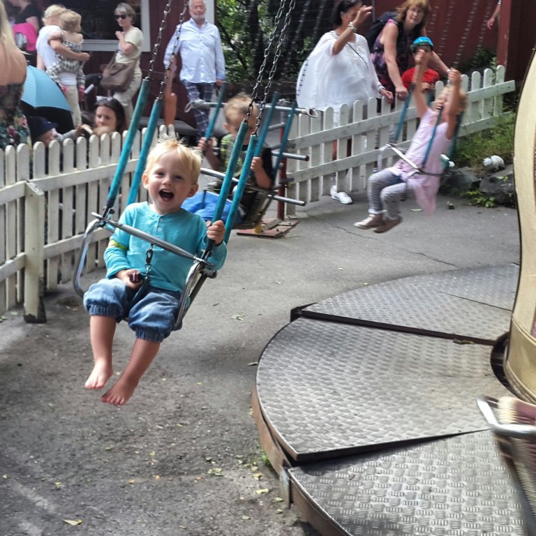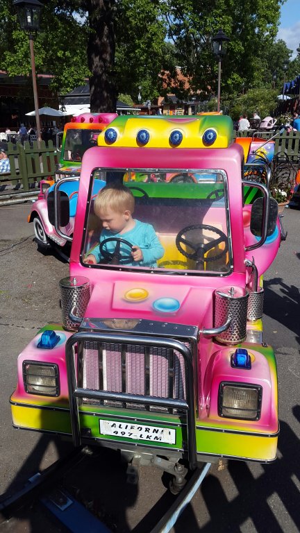 Där nere fanns det åkattraktioner för små barn som Felix. Han fick åka karusellerna och bilarna flera gånger och blev lika sur och arg varje gång det tog slut.