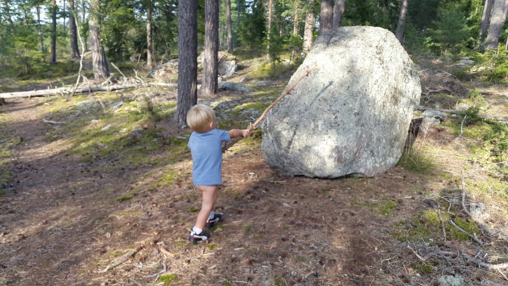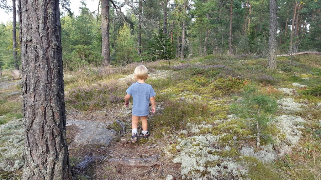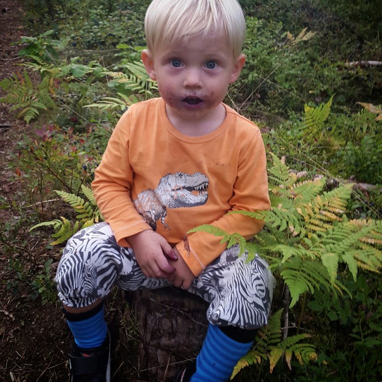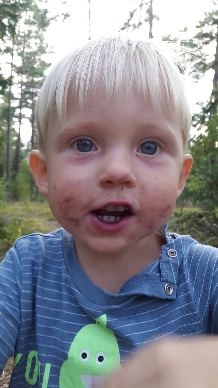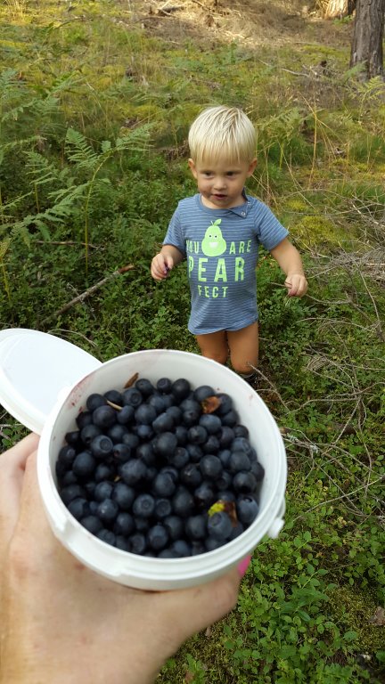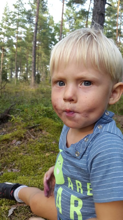 Felix var supernöjd över att få springa halvnaken i skogen och äta bär och jag var harmonisk över att Felix var nöjd och att slippa säga nej hela tiden. När vi kom hem efter två timmar så åt han mat och satte sig och tittade på Nicke Nyfiken – nöjd!