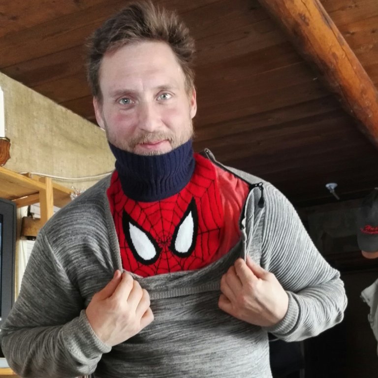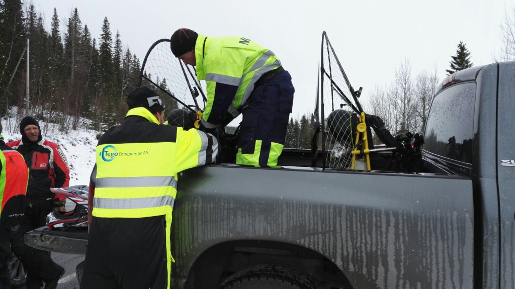 Ett plötsligt snöfall kom över oss och gjorde att sikten försvann helt. Jag hade ju ett spår att följa tillbaka men killarnas skärmar hade blivit så tunga av den blöta snön så de fick inte upp dem i luften.