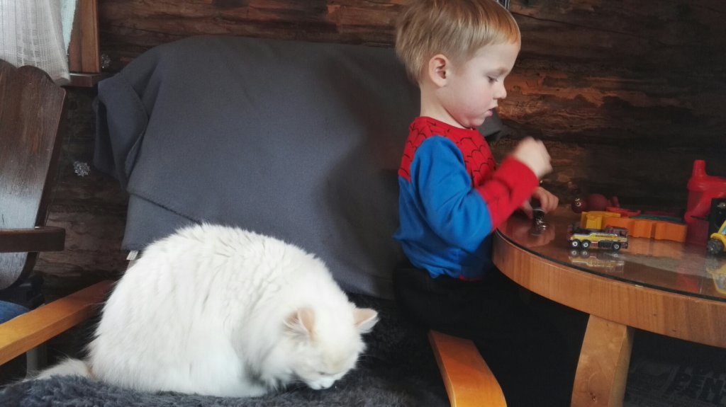 Kennys kompis Micke som bor granne med stugan i Huså åkte upp samtidigt med oss och tog med Kennys och sin egen flygmaskin som de lekte med en del.