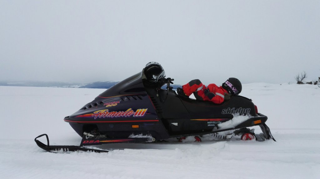 Plötsligt kom killarna tillbaka och landade 100 meter framför mig, fortfarande utan att ha sett mig och jag var alltså i princip helt ensam skoter på isen hela vägen, snacka om blindstyren.