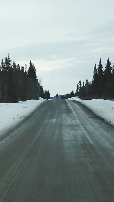 På söndag morgon var det fem grader varmt ute och fortfarande ingen sol. Skoterföret såg bristfälligt ut och jag kände en längtan hem.