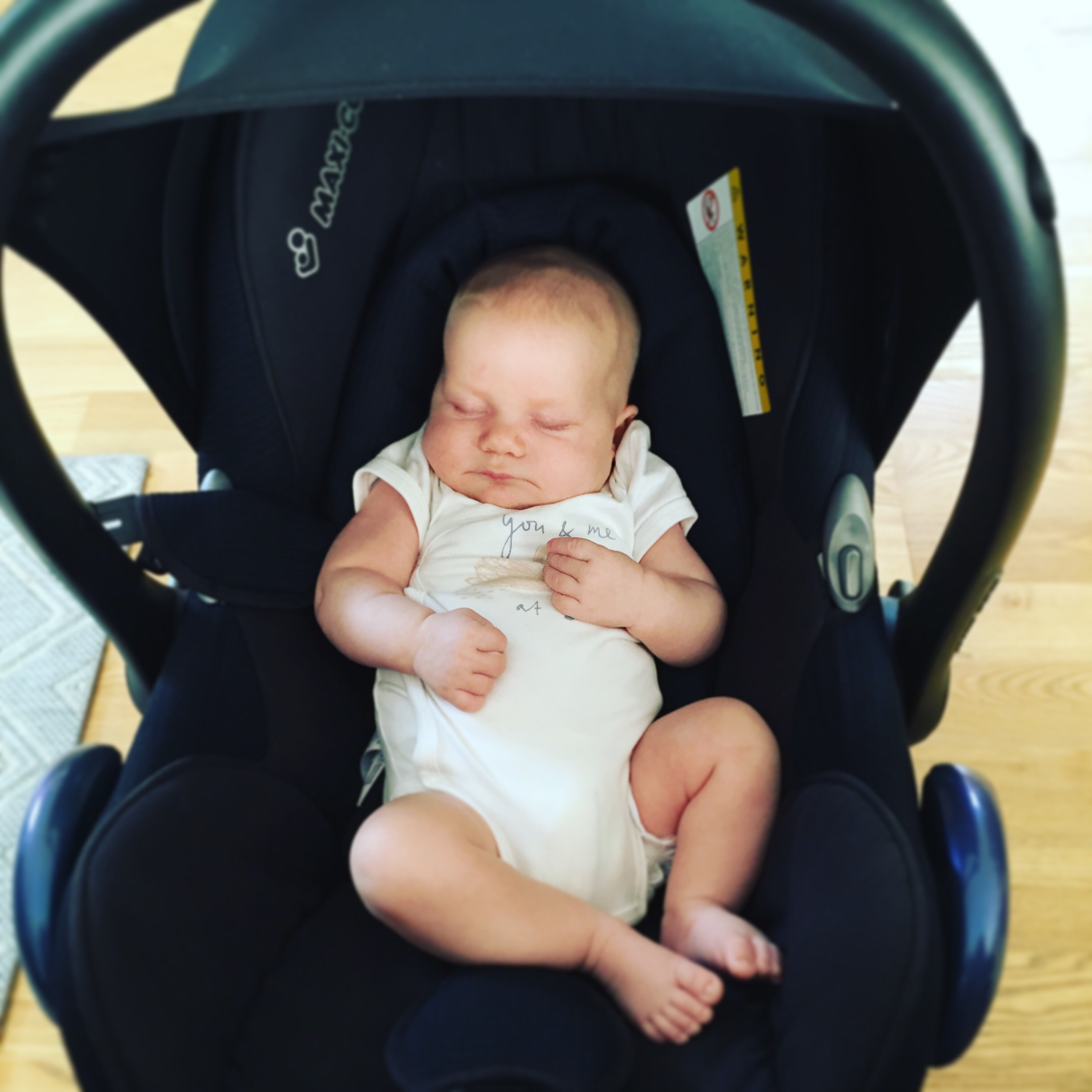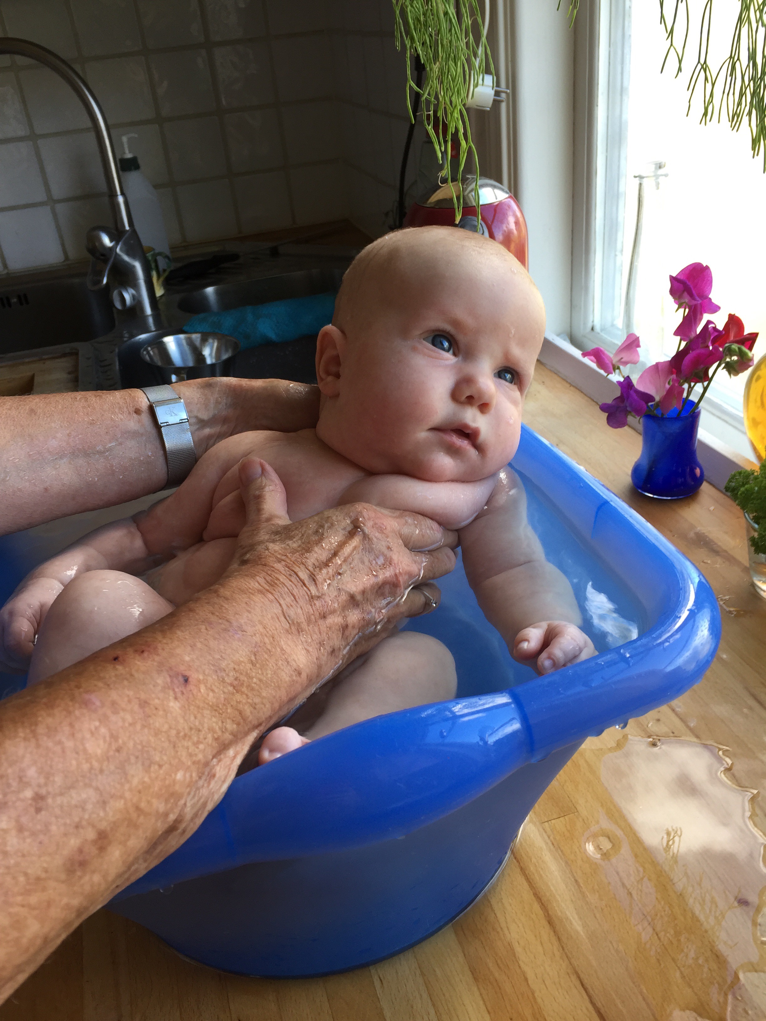 Det har blivit betydligt bättre men kvällarna tillbringar vi med att någon av oss bär runt henne tills vi tröttnar och går och lägger oss (mig). Ibland tror vi att hon somnat och försöker sätta oss ner men då öppnar hon sina blå igen och låter oss veta att hon minsann inte sover.