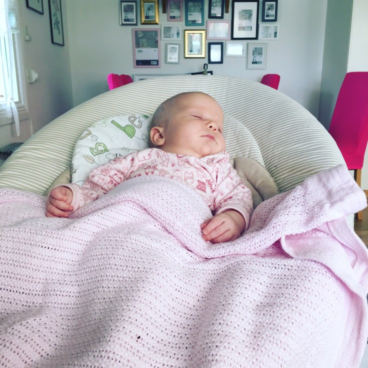Hon slutar dock inte att skrika så jag går och lägger mig, klockan är bara strax före nio men tiden uppe blir inte värt något i skrikandet. Ikväll är hon extra arg och jag får prata ner henne i varv, sjunga både ”lilla- och stora snigel akta dig” i tjugo minuter innan hon tycker att det är okej att ta tutte och somna, men hon gör det till slut.