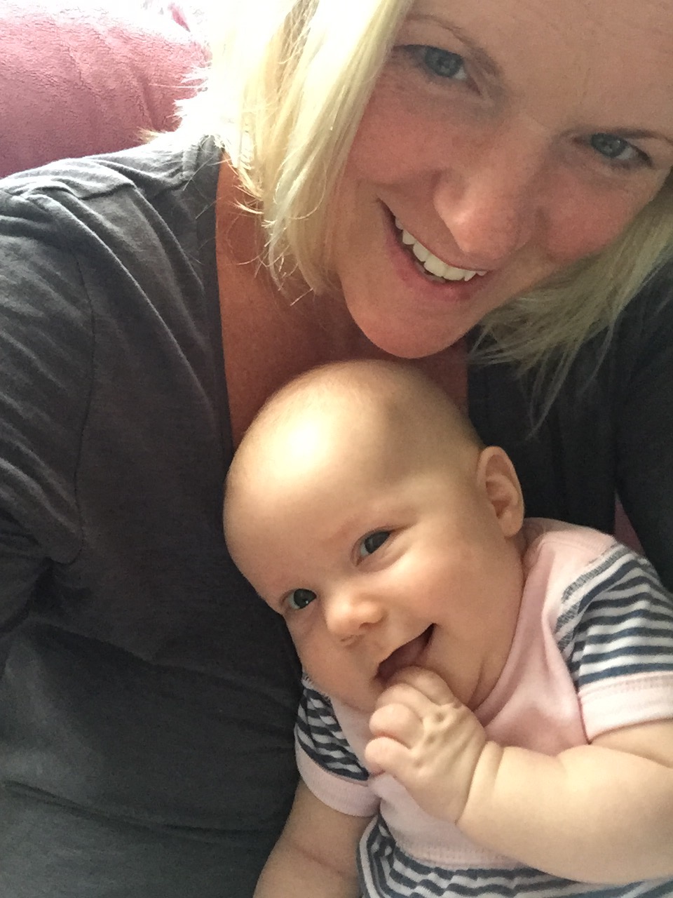 Jag försöker alltså göra Tuva nöjd istället, det går också åt skogen. Mitt finger i hennes mun är inte ett dugg tröstande, napp är bara att glömma. Hon blir ännu argare när jag lägger henne vid tutten, det är ju inte det hon vill ha! Jag går med henne på armen, skakandes och guppandes, försöker hitta en rytm som fungerar men nej, idag duger inte jag. Kenny dyker upp igen, tar över bärandet och jag blir så glad över att han finns där.