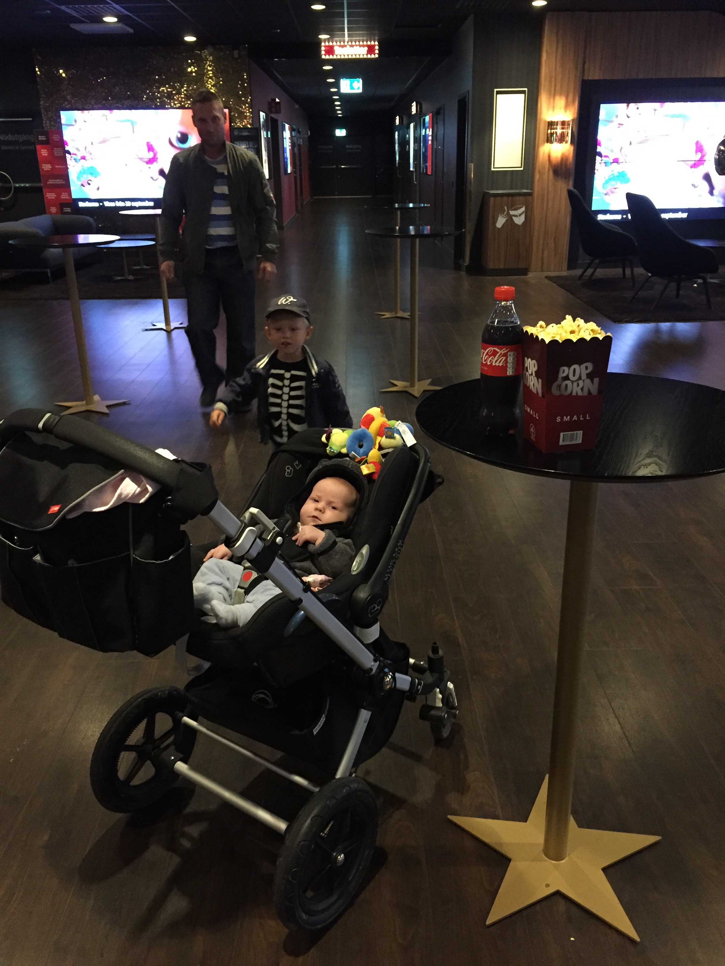 Utanför biografen blev ögonen stora som tennisbollar när vi gick förbi allt godis men han nöjde sig ändå med popcorn. Jag pussade killarna hejdå, och rullade iväg med barnvagnen, ganska avundsjuk över att inte få vara med om Felix första biobesök. Men det var mitt val.