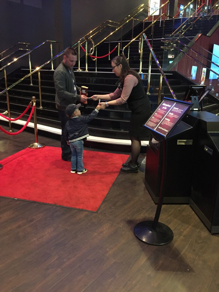 I bilen berättade vi för Felix att han skulle få gå på bio och insåg rätt omgående att han inte hade en aning om vad vi pratade om. Han frågade lite trevande och hoppfullt om det var leklandet vi menade (han älskar lekland!) och jag försökte förklara att det var en stor salong med massa stolar och en jättestor tv som visade film men när vi kom till parkeringsgaraget så frågade han om det var bion så jag tror inte min förklaring gick hem.