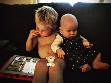 När jag idag bad honom hjälpa mig att hålla i henne, då blev det lite jobbigt. Det är lite samma känsla som med Nisse, att han skitar ner sig genom att röra lillasyster. När hennes små fingrar eller fötter rör honom flyttar han sig långt bort från henne i soffan, så ni förstår vad det tog emot att ”hjälpa”mamma att hålla i henne.