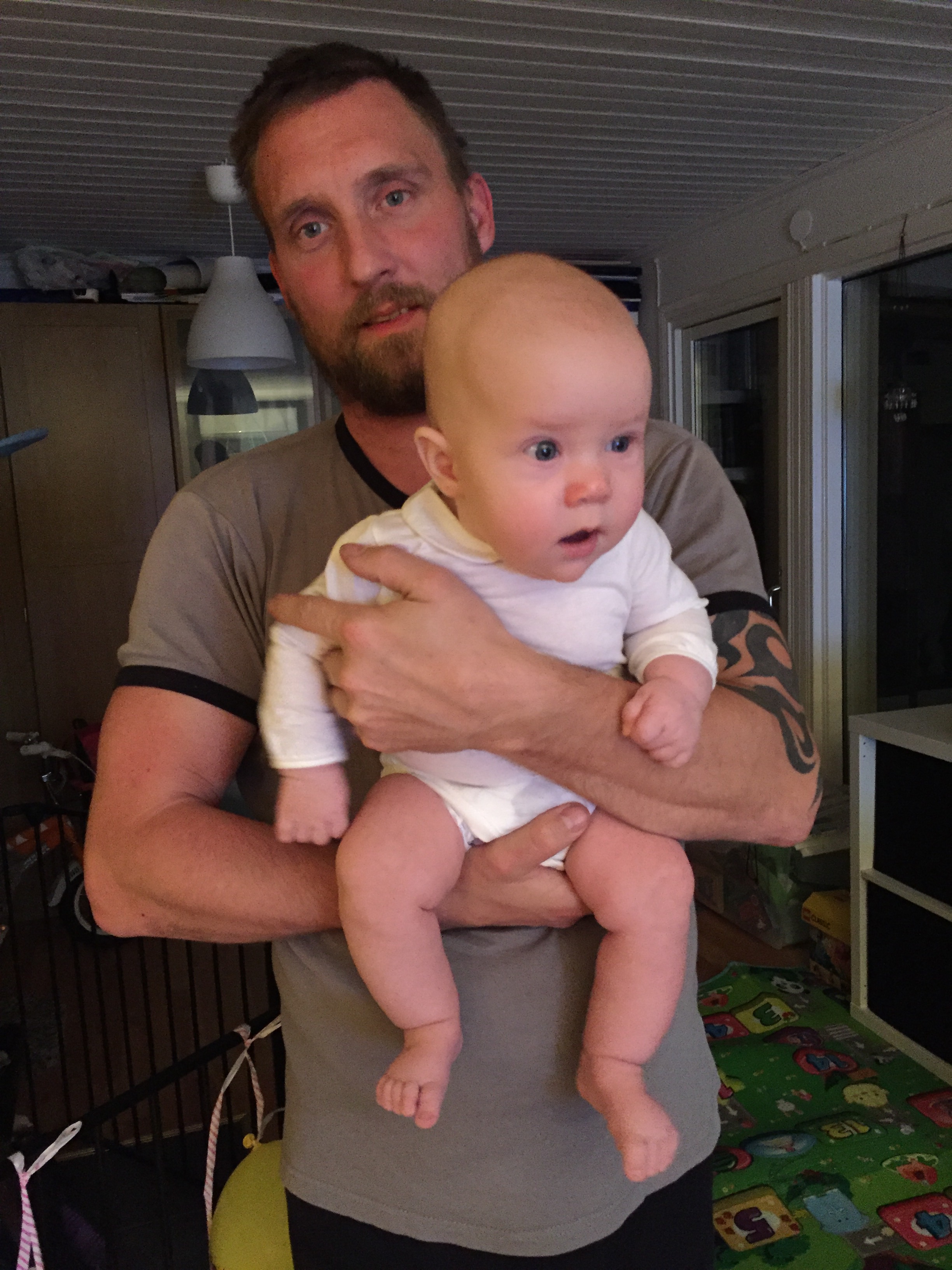 Felix tycker att lillasyster är bra och så, ingen som han lägger så stor vikt vid. Hon är rolig och bra på avstånd och lustig när hon har massor med dreggelbubblor runt munnen eller när hon pruttar sådär högljutt. -Hon är glad, eller, hon är ledsen, konstaterar han ibland. Och när jag ska byta blöja -hon har BAJSAT! (Det är mycket bajs-snack på Felix just nu). Han är fortfarande jättestolt över sin lillasyster när vi är bland folk och lämnar inte hennes sida förrän alla har tittat på henne.