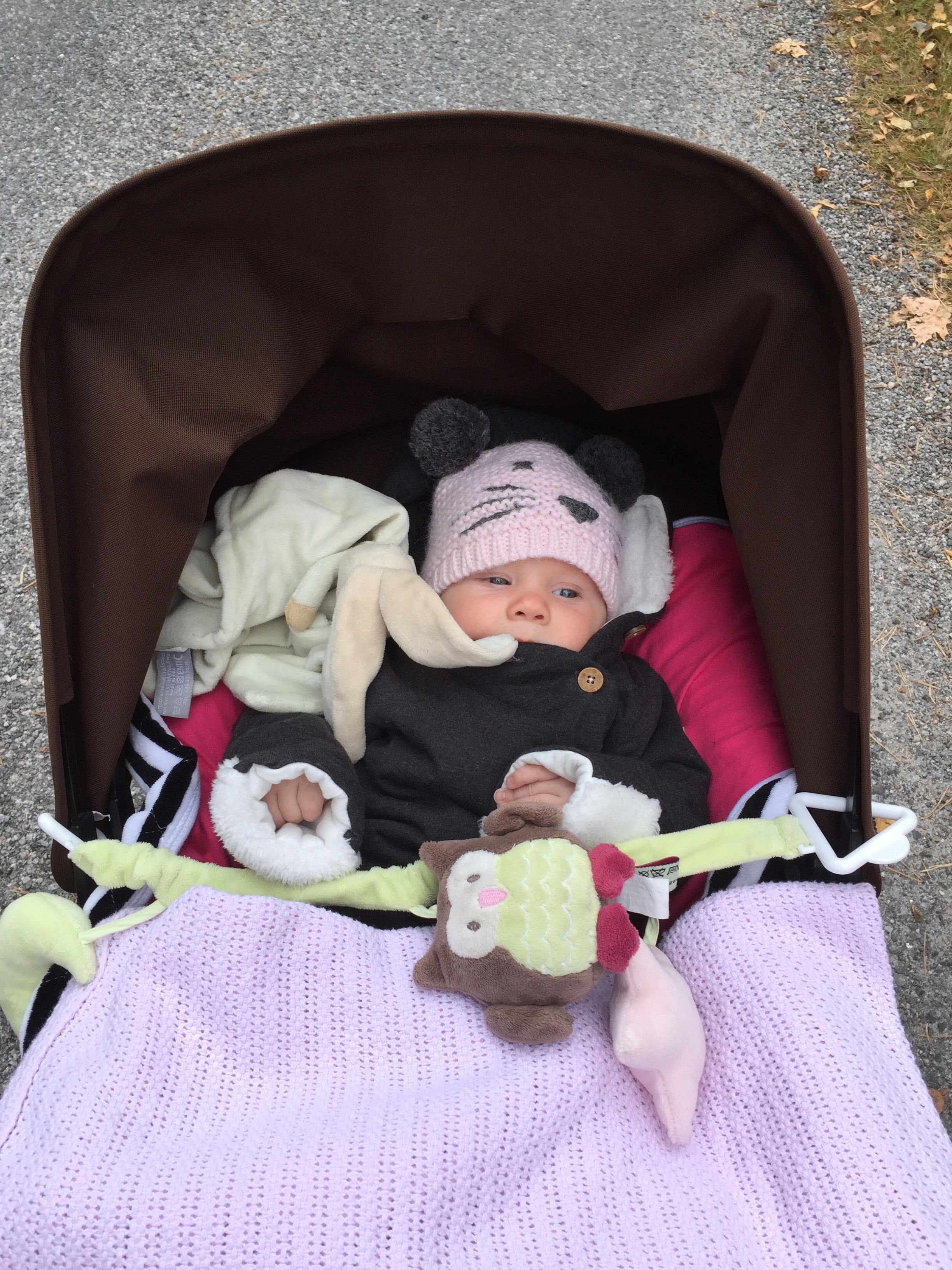Strax efter lunch så lyckades jag komma ut ur huset också. Allt ska liksom klaffa för att man ska kunna gå ut, Tuva ska ha fått mat precis innan, gärna ha hunnit bajsa så att jag kan byta blöjan också, jag ska ha fått på mig kläder och borstat tänderna och fått i mig lagom med mat för att orka gå, fått ut vagnen från bilen, klätt på Tuva och så vidare. Sen ska hon sova i två timmar och det är oftast den biten som skiter sig.