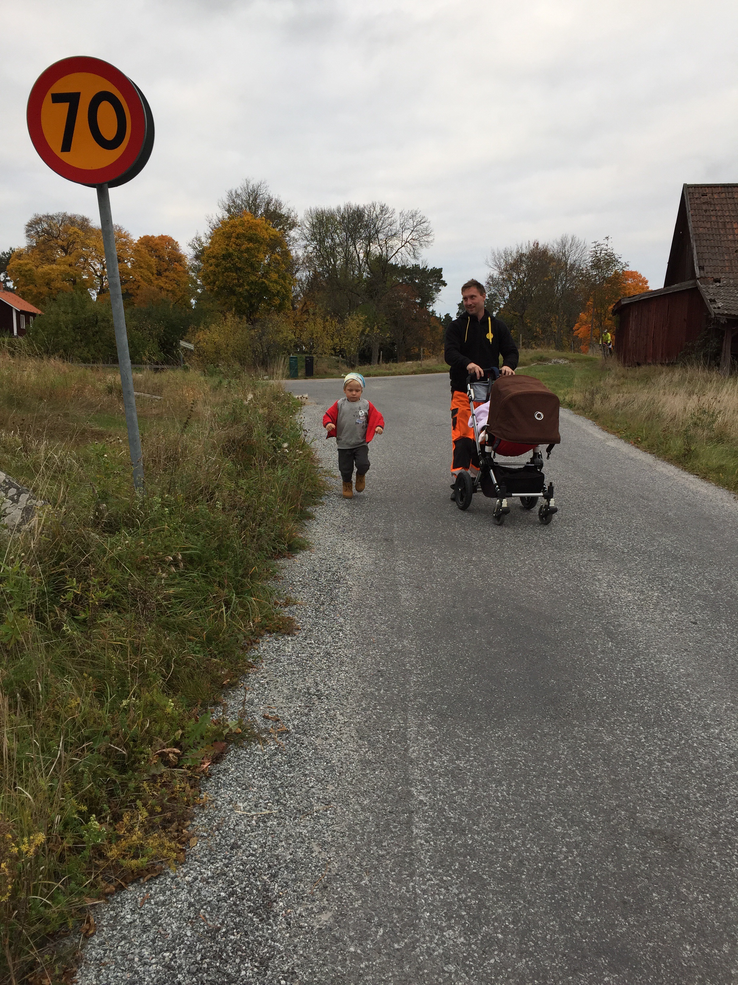 Jag gick upp till trafikplats Glädjen, vilket resulterade i 7.31 km, lite för kort för dagsransonen eftersom jag blev hämtad där av Kenny, men ändå lite långt för en retur också. Kanske om Tuva blir lite mer nöjd av att åka vagn framöver.