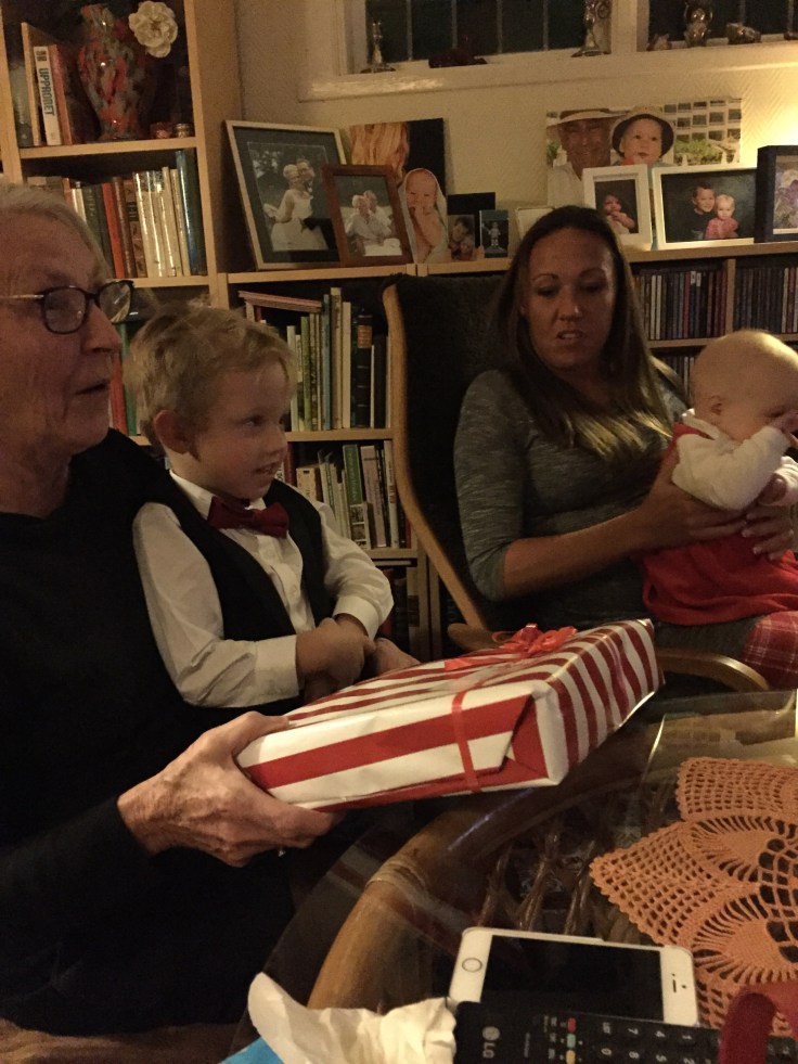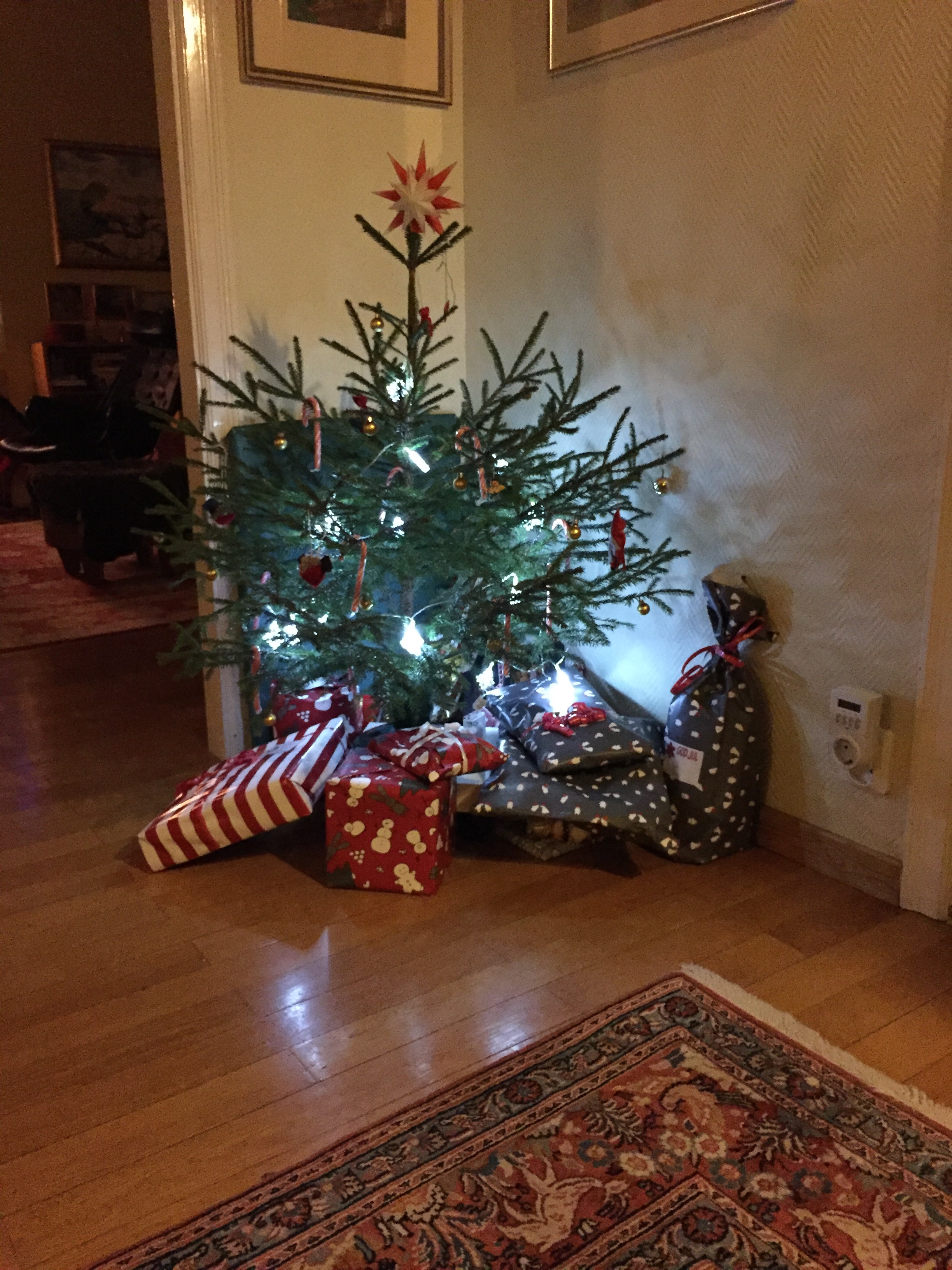 För att inte smitta ner Kennys släkt och för att jag var rätt risig så fick Kenny släppa av mig hos mamma innan han åkte vidare för julfirande. Hos mamma passade jag på att vila ut i soffan, utan ett enda barn som krävde uppmärksamhet, i flera timmar innan Kenny och barnen kom tillbaka för att hälsa på tomten som satt och väntade med paket.