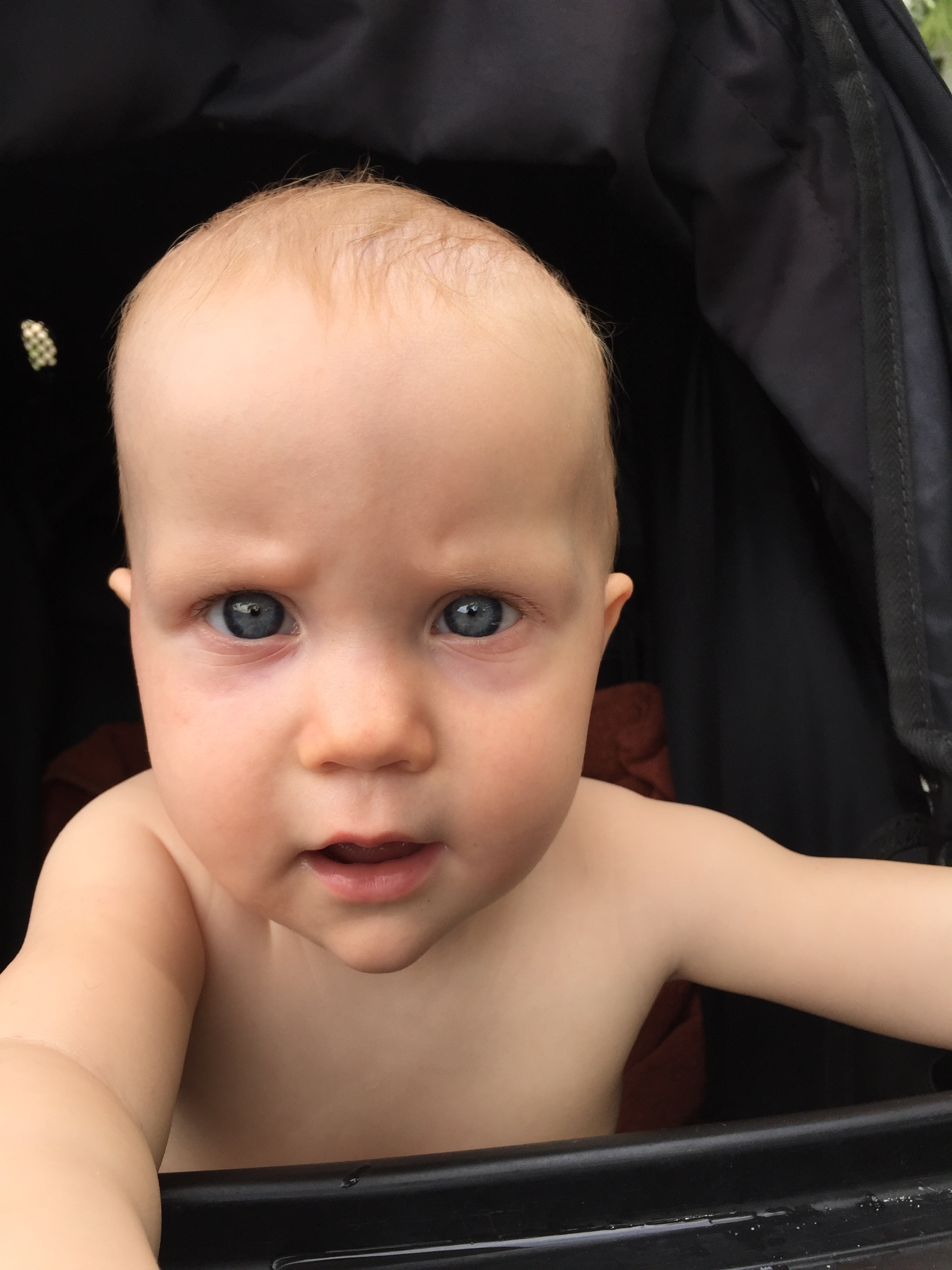 Felix har börjat med Baywatchskaket! Ni vet hur tjejer alltid drar händerna från ansiktet och bakåt i håret när de/vi kommer upp från vattnet? Killar har ju en annan variant där det skakar huvudet fram och tillbaka istället, utan att röra håret. Det lär man sig tydligen vid tre och ett halvt års ålder.